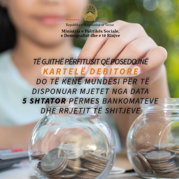 Përfituesit e të drejtave monetare, të cilët posedojnë kartelë debitore do të jenë në gjendje t’i tërheqin paratë në bankomatet e bankave, t’i përdorin mjetet për pagesa pa para të gatshme në rrjetin e shitjeve ose përmes bankave elektronike dhe mobile që nga sot, 5 shtator 2025.